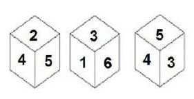 Three different positions of the same dice are shown. Select the number which will be on the face opposite to the face marked '5' of the dice.