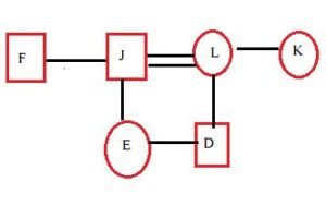 F is the brother of J. E is the sister of D. K is the sister of L.