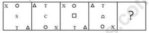 यदि निम्नलिखित आकृति श्रृंखला को जारी रखा जाए, तो दिए गए विकल्पों में से कौन – सी आकृति प्रश्नवाचक चिह्न (?) को प्रतिस्थापित करेगी?