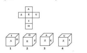 यदि दी गई शीट को मोड़कर एक घन बनाया जाए, तो निम्न में से कौन सी आकृति/आकृतियां बनना संभव है?
