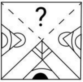 विकल्पों में से उस आकृति का चयन कीजिए जो प्रश्नवाचक चिन्ह (?) के स्थान पर आ सकती है तथा दिए गए स्वरूप को पूरा कर सकती है।