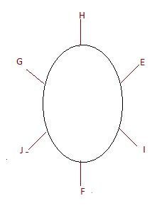 six students E,F,G,H,I and J are sitting around a circular table facing the centre.