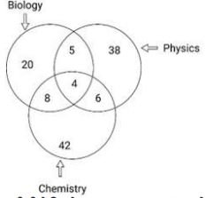 Study the given diagram carefully and answer the question that follows. The numbers in different sections indicate the number of students who like to study different subjects.