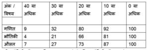 दी गई तालिका100 छात्रों द्वारा एक परीक्षा में गणित और भौतिकी में 50 अंकों में से प्राप्त अंकों को दर्शाती हैं।