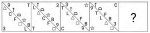 यदि निम्नलिखित आकृति श्रृंखला को जारी रखना हो तो कौन- सी आकृति प्रश्न चिन्ह (?) के स्थान पर आनी चाहिए?